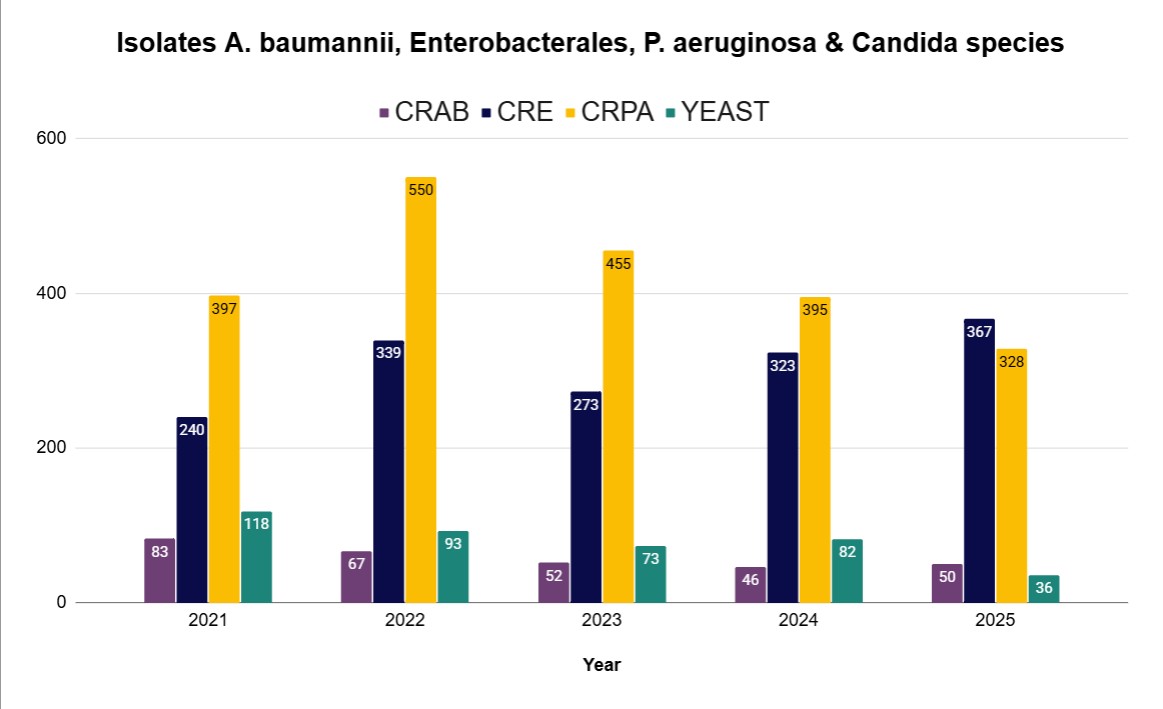 Figure 3: Mechanisms of Carbapenem-resistant Acinetobacter baumannii from isolates submitted in Utah, 2021-2025.